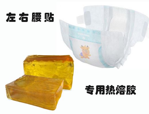 左右腰貼專用熱熔膠用于:粘接不帶膠的魔術(shù)扣與底膜無紡布、防漏隔邊無紡布。