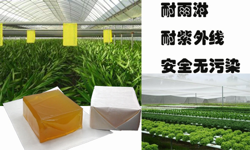 粘蟲(chóng)板上用的是熱熔膠,該熱熔膠產(chǎn)品無(wú)毒無(wú)害、粘著力強(qiáng),施工方便,固含量100%,產(chǎn)品通過(guò)多項(xiàng)環(huán)保檢測(cè),符合最新環(huán)保標(biāo)準(zhǔn),安全無(wú)污染,最主要的是這款產(chǎn)品耐雨淋、耐紫外線。