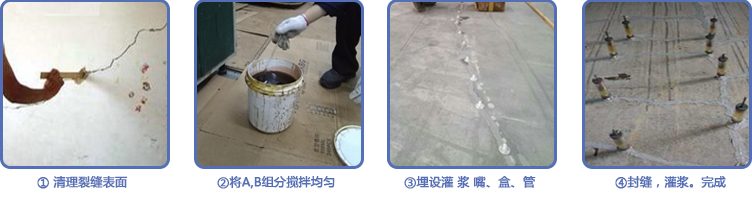 2. 恢復混凝土部分強度的壓力注漿 法或注射法。從細微裂縫到大裂縫均可適用,處理效果好,修補后混凝土材料的強度 與耐久性均有明顯提高。